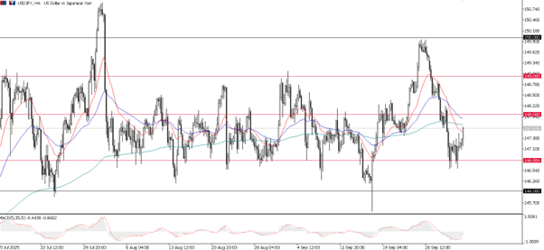 R : Attendez-vous à une évolution limitée entre 146,80 et 150,00, jusqu’à ce qu’un événement politique ou macroéconomique décisif vienne débloquer la situation.